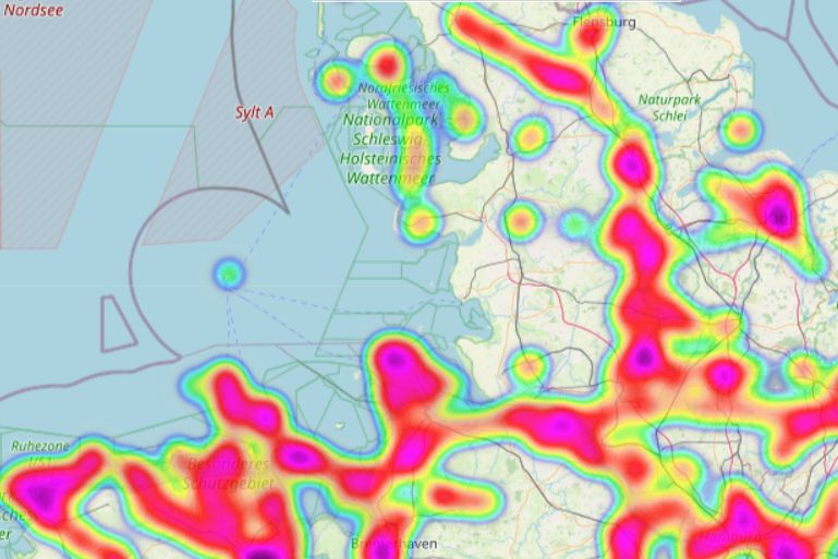 Senso*Map zeigt die historische, nach flexiblen Kriterien ausgewertete Belegungsdichte von einzelnen Luftraumzellen (ca. 1 km